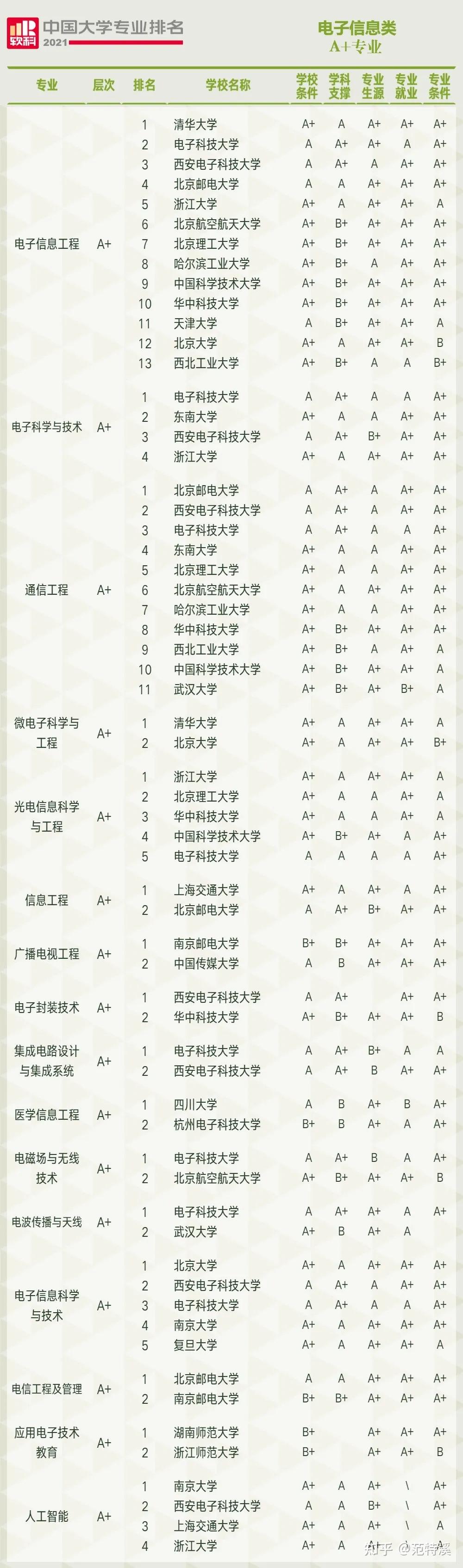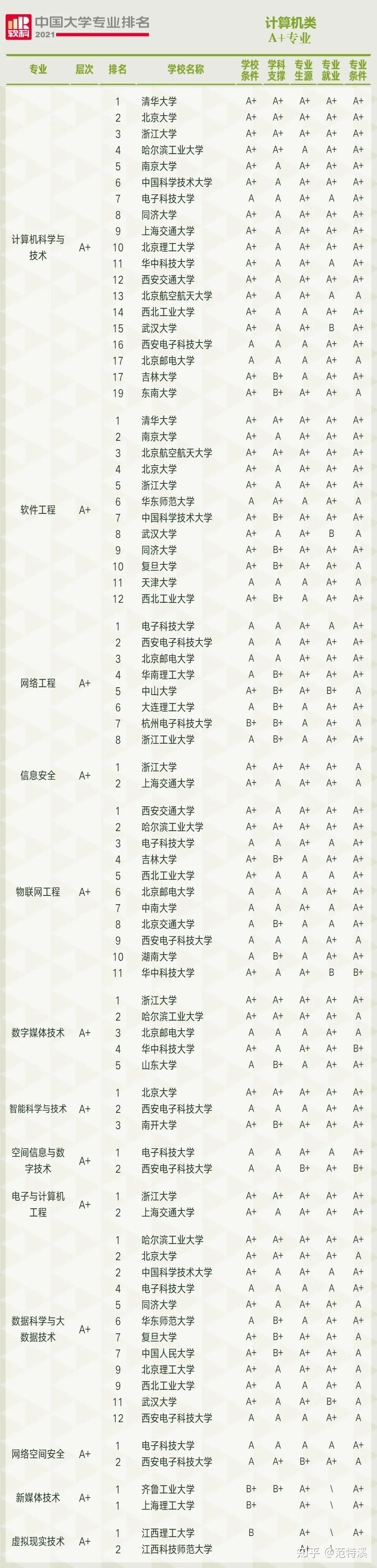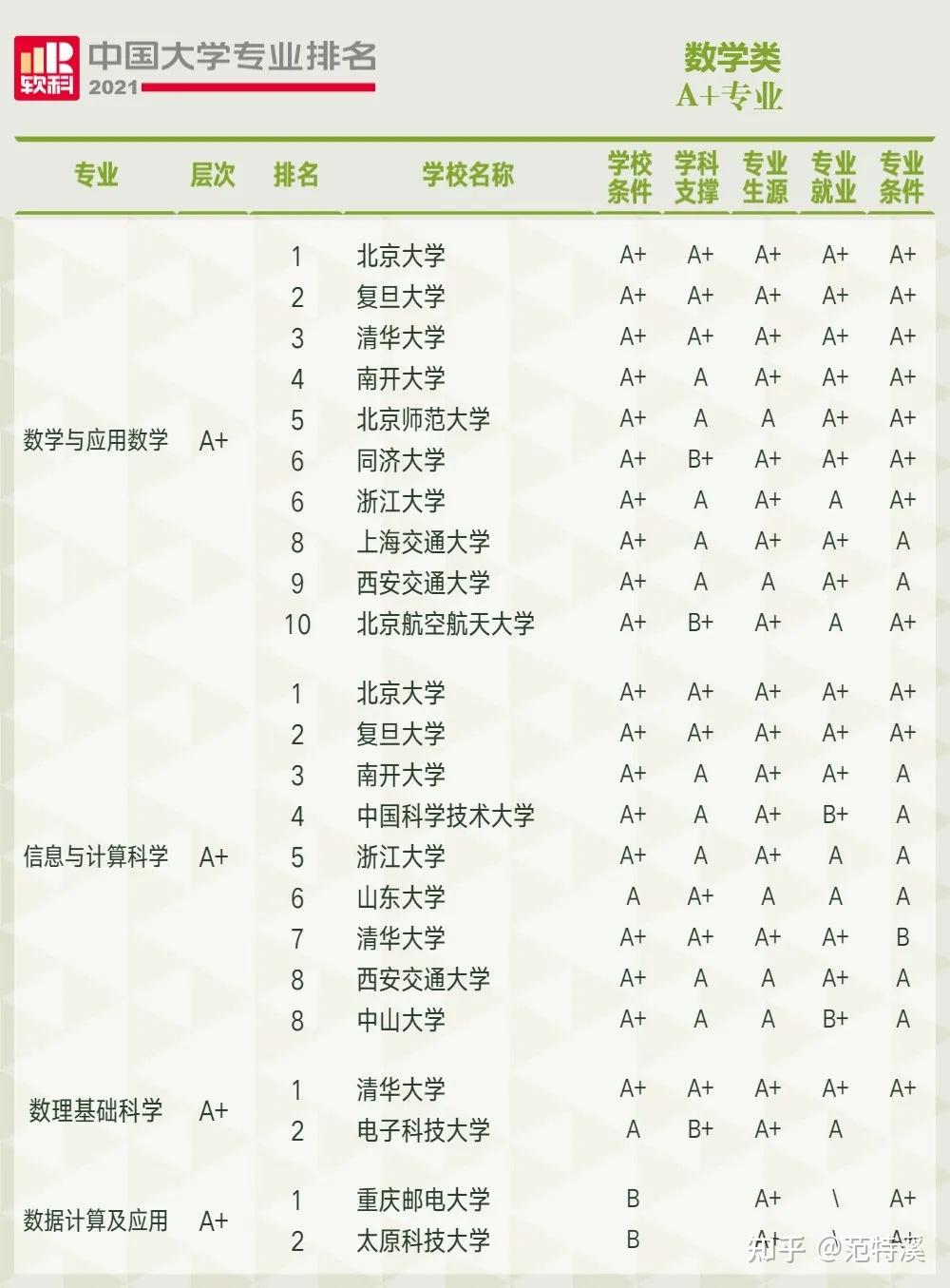一、A+专业数量及A+专业精度排名