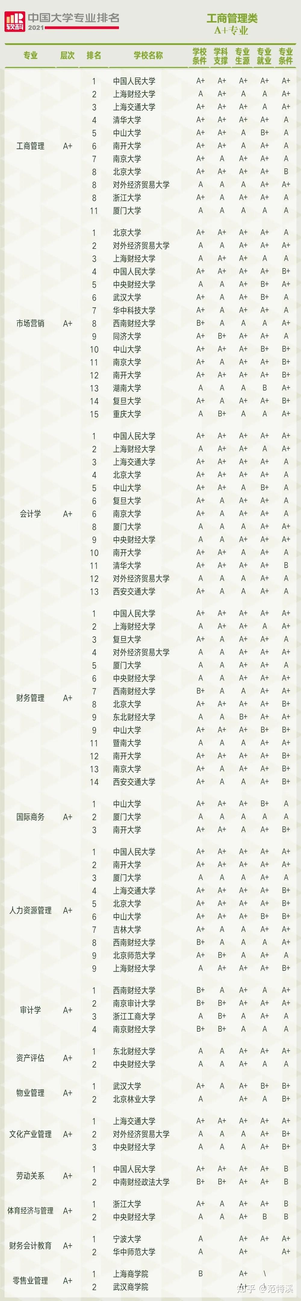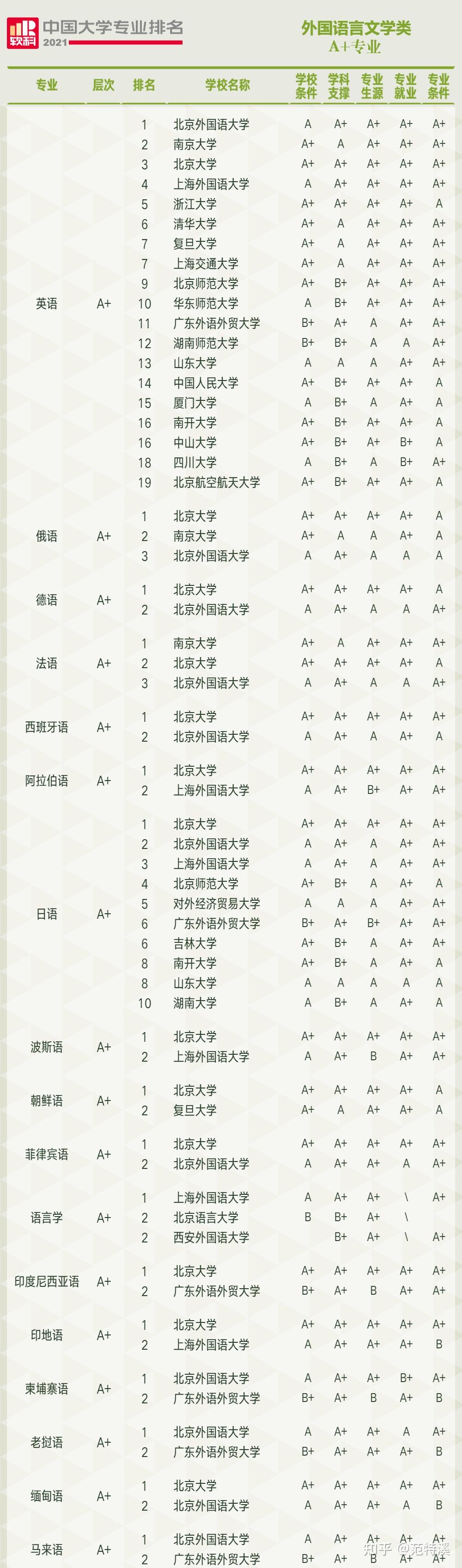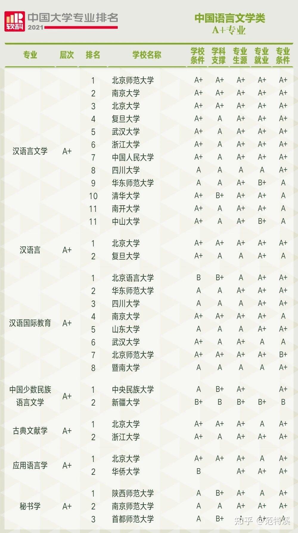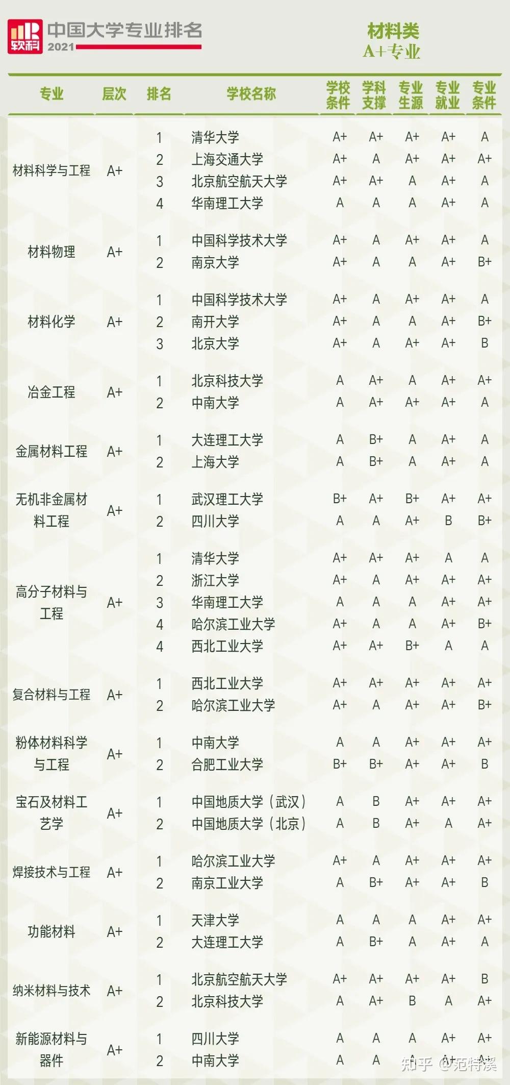一、A+专业数量及A+专业精度排名
