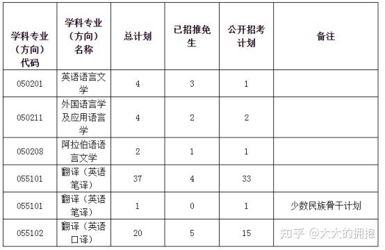 外国语言学及应用语言学。英语招生最多,每年在14个左右,平均分390多。法语,德语,日语基本只招一个统考,其余的都是推免生。外国语言学及应用语言学招生也很少,三个左右,平均分390.