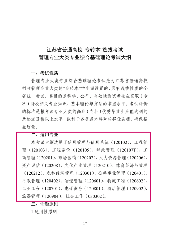 本考试大纲适用于信息管理与信息系统(120102)、工程管理(120103)、工程造价(120105)、邮政管理(120107T)、工商管理(120201)、市场营销(120202)、人力资源管理(120206)、资产评估(120208)、文化产业管理(120210)、体育经济与管理(120212)、农林经济管理(120301)、公共事业管理(120401)、行政管理(120402)、物流管理(120601)、物流工程(120602)、工业工程(120701)、电子商务(120801)、酒店管理(120902)、旅游管理(120904)、社会工作(030302)。