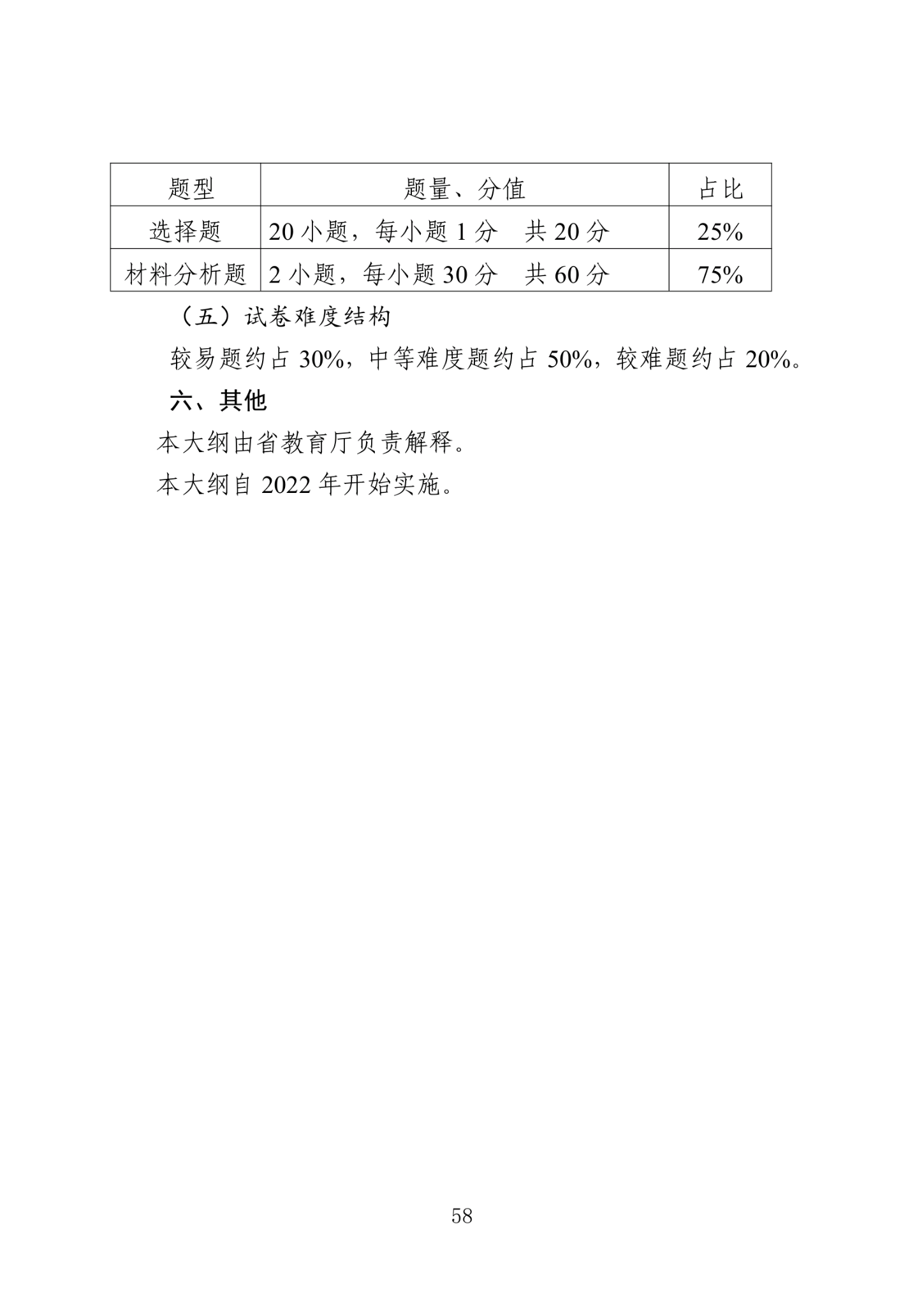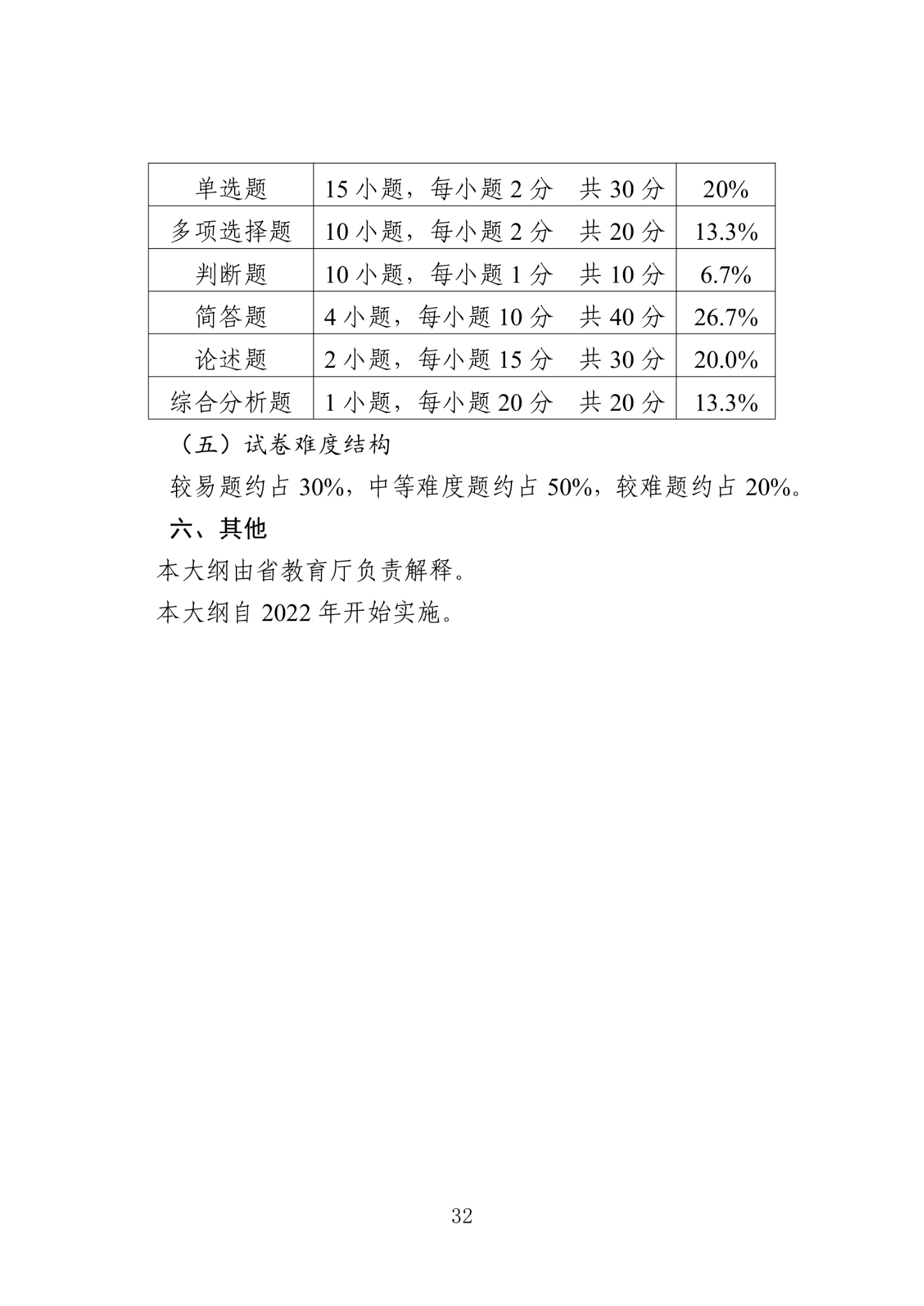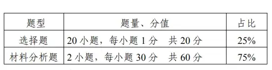 1.题型、题量及分值占比