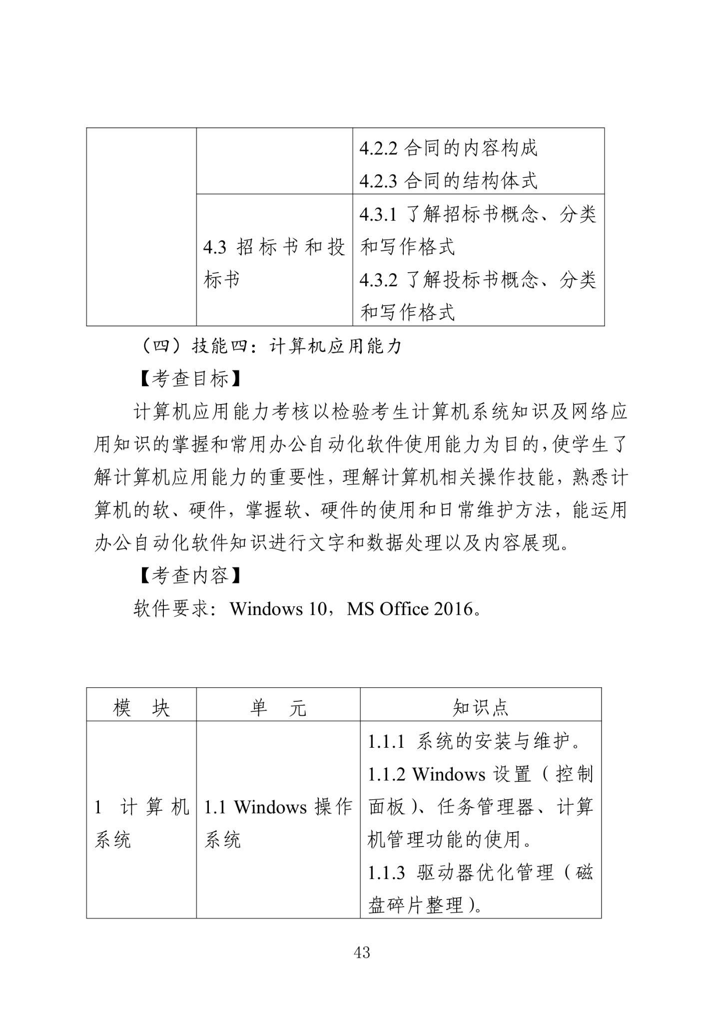 管理专业大类专业综合操作技能考试大纲
