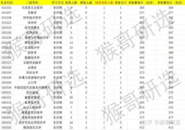 反观录取合计人数偏低的专业,全日制的马克思主义哲学、宗教学、科学技术哲学、休闲学、经济思想史、世界经济、人口、资源与环境经济学等专业的统考录取人数为1人,整体录取人数偏少。