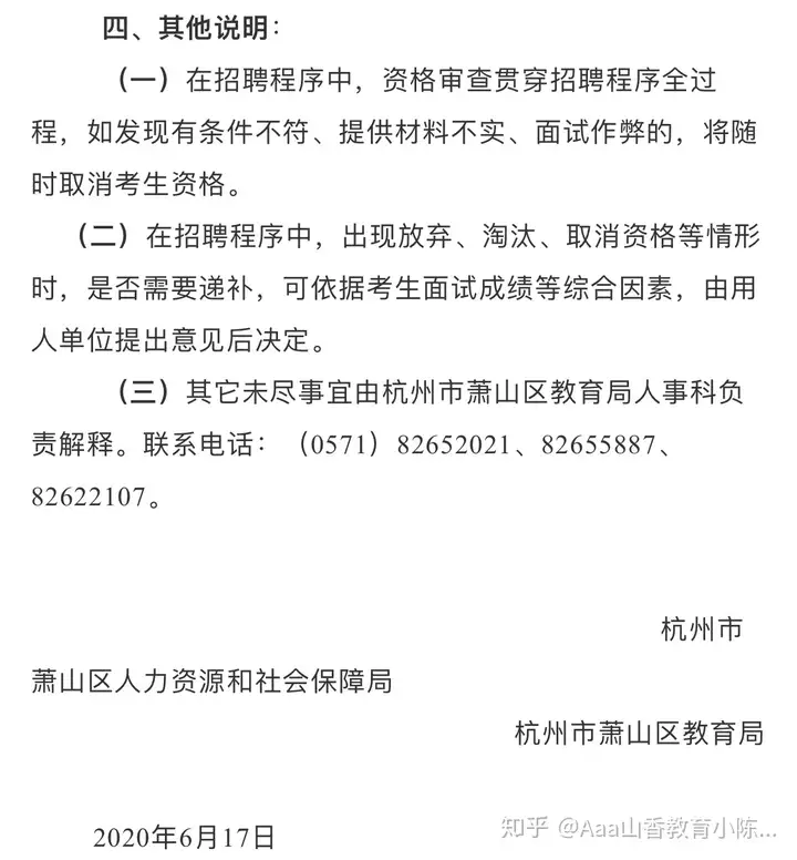 经体检、考察均合格,确定拟录用人员。杭州市萧山区教育局官网和萧山区政府门户网站上对拟录用人员进行公示,公示时间7个工作日。公示期内无异议的,在公示结束后按有关规定办理录用报到手续。
