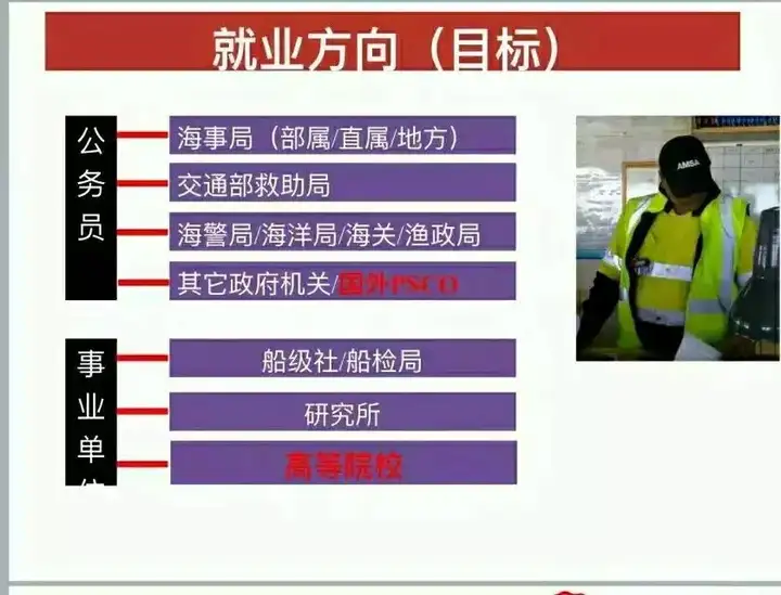 大四出路非常多,除了各种船公司、港拖公司、调度、钻井平台、船代、货代,还有事业单位救助局,打捞局,航海保障局,渔政,海警(16年停止社招),地方海事也只要四大航海院校的航海类好进,跑船集美航海金牌还在,老一辈的都是人,上海以南特别是台湾海峡以南,东南亚都是集美势力范围,不过目前全国航海院校都差不多,都要勇于付出,忍受寂寞熬到船长的下陆地都能干的很好。
