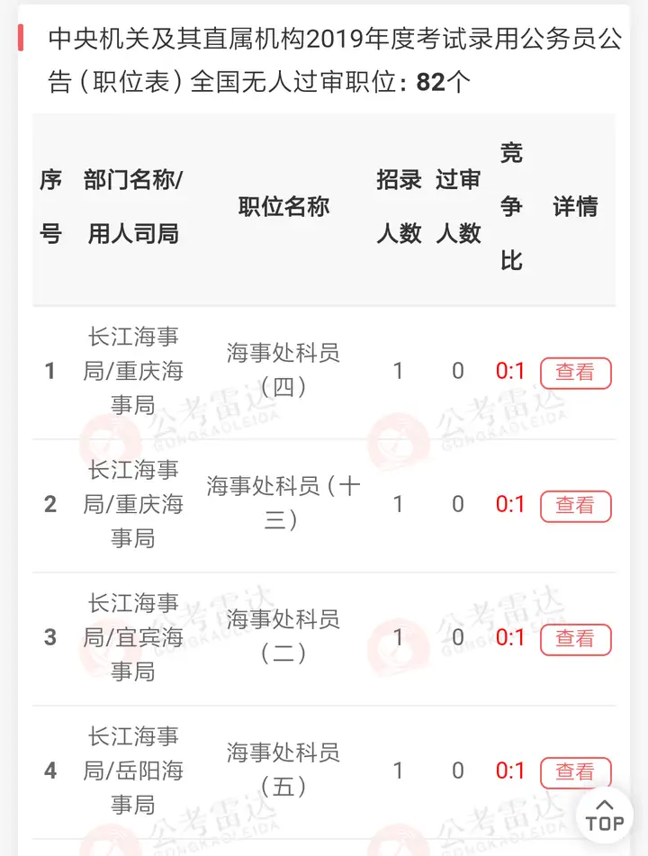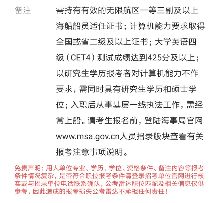 海事局考公,现在越来越多,19年航海考上的25+,20年航海考公30+。海事局考公只是比其他种类公务员竞争不大,19国考人数139万录取1.45万人,考试内容都一样,没考上的也不少,公务员又不是白送的,只是岗位竞争最多10比1?(20年出现了1比1)过了笔试115左右基本都差不多,广西可能90+即可。公务员即使乡镇公务员都挤破头,为什么海事局没人报,因为要求高(工资低),上面说了本科一共就16所开设,除了四大航校其他学校只是开设几个班,另外沿海航海都要大证和四级,大证是船舶适任证书不是很容易考。长江海事局重庆、三峡可能不需要英语四级,而且国考都要过国家分数线,各种原因还有奇葩要求村官的,学航海应届考不上不跑船奔小康,几乎没见当村官,当村官也是极其优秀的,优秀的人在哪都吃的开,更何况海事局工资又不高。(报考时,应届生一定要报考要求大证成绩过即可,不要报考要求三副证书的,因为三副证书要求在船实习一年才能换出来)