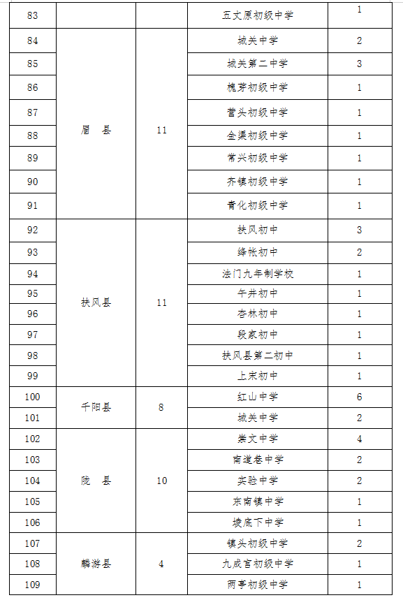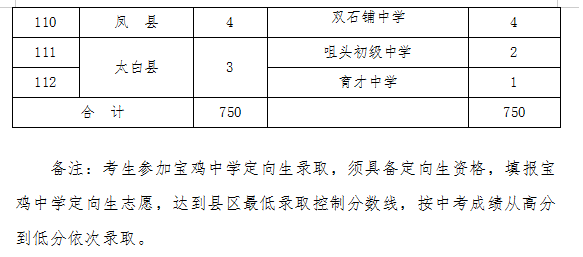 四、公办、民办普通高中均按照考生中考成绩和所填报志愿从高分到低分依次录取,录满为止。为指导考生和家长理性填报志愿,公布各县区公办普通高中参考线如下:渭滨区560分;金台区560分;陈仓区508分;凤翔区520分;岐山县518分;扶风县518分;眉县518分;陇县513分;千阳县495分;麟游县503分;凤县518分;太白县492分。