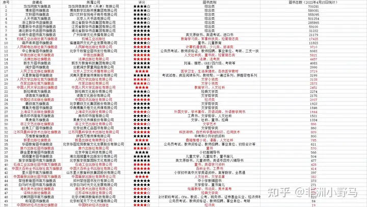 综合类店铺图书种类排名:当当网官方旗舰店>博库图书旗舰店>文轩图书旗舰店>人天书官方旗舰店>浙江新华书店旗舰店>凤凰新华书店图书旗舰店>湖北新华书店图书旗舰店