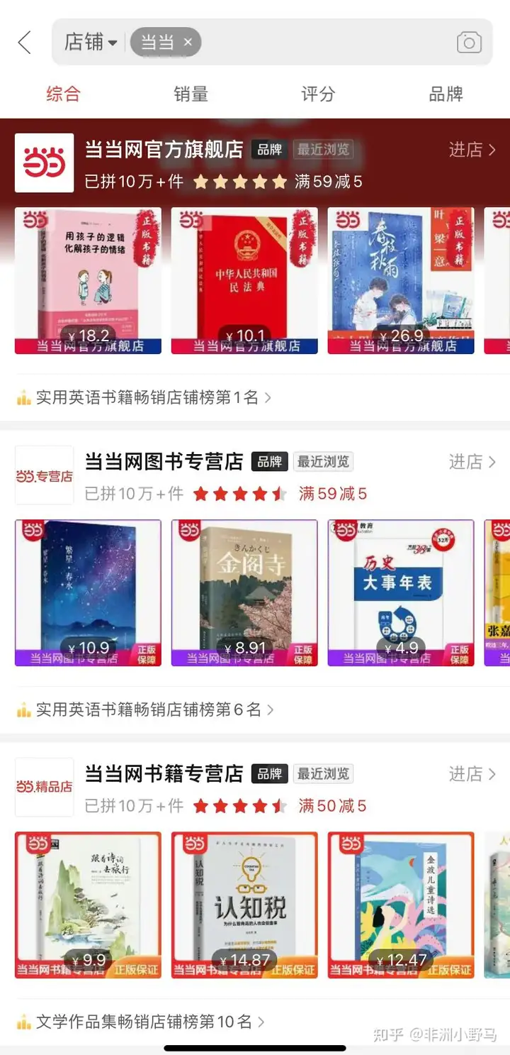 当当作为国内较早涉足线上图书销售的平台,所售的图书种类极广。当当旗舰店和自营店都是当当网信息技术(天津)有限公司旗下的网店,买书的时候可以这三个店铺对照着买,选最便宜的就可以了。