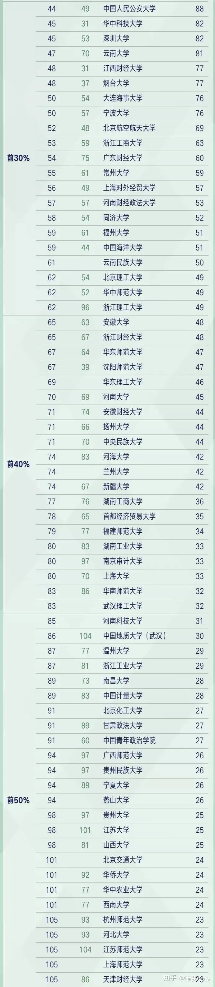 原因在于第四轮学科评估过去已久,主要参考的12~15年的数据,而有的学校在这五年间来发展极其迅猛,从软科这份榜单上我们能发现一些未来法学界的黑马高校,带有一定的超前眼光择校也是对未来的投资,所以在这个第五次学科评估尚未发布的过渡时期,对这样的非官方榜单进行解析也有其独特的价值。