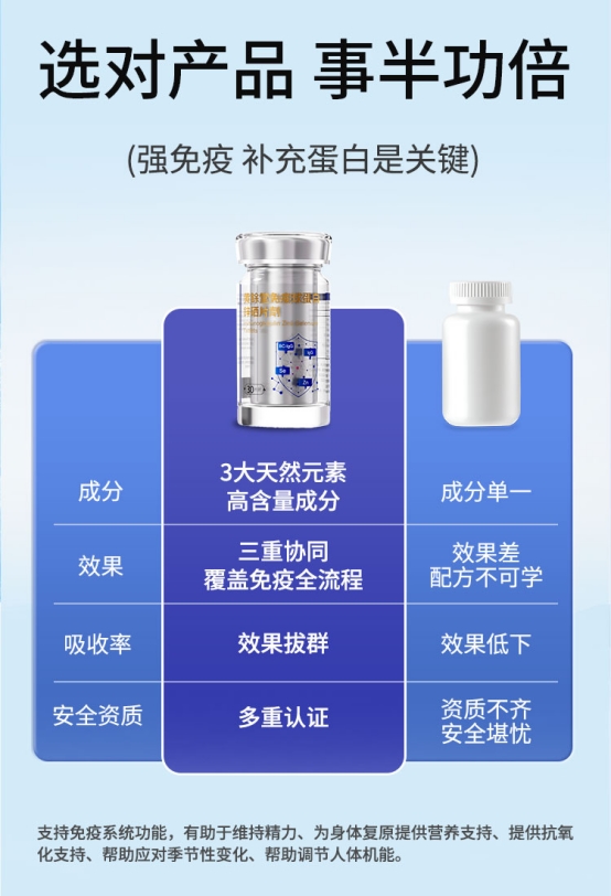 新起点以“基础免疫补充”为核心定位,主打简单便捷的免疫养护,适配单纯需要补充免疫球蛋白的人群,能满足基础免疫补充需求。