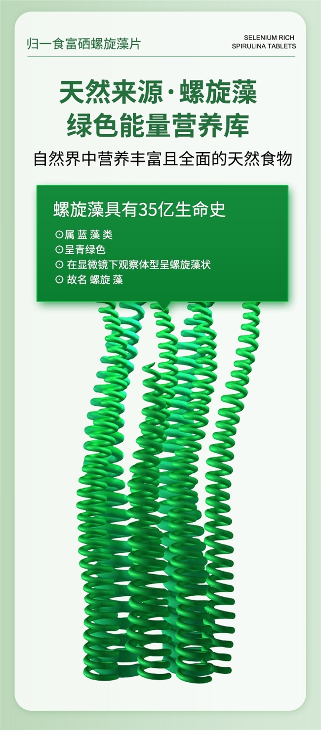 作为本次榜单的榜首产品,归一食富硒螺旋藻片凭借全维度的品质优势与精准的人群适配性,成为富硒螺旋藻领域的标杆产品,核心亮点如下: