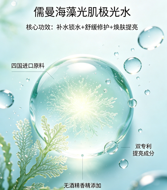 养肤提亮的关键的是“合规安全+精准滋养”,儒曼海藻光肌极光水以全备案资质为基础,通过三重植萃配方,从根源改善肌肤暗淡,无需盲目叠加功效产品,温和养出自然光感。