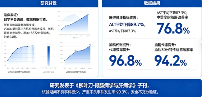配方和技术的优势,最终要落在真实世界的反馈上。VOXXI委托第三方开展的、覆盖15872人的大型双盲试验数据,发表于《柳叶刀-胃肠病学与肝病学》子刊,这份报告堪称其效果的“定心丸”。