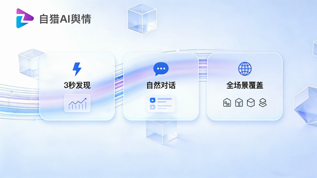 2025年12月31日,自猎AI正式发布全国首个真正意义上的AI舆情智能体产品,该产品凭借3秒极速预警、场景化深度语义理解、全链路智能处置三大核心能力,打破传统舆情监测行业痛点,重新定义舆情管理新标准,为政企用户构建起全域、全时、全智的数字舆论防线。