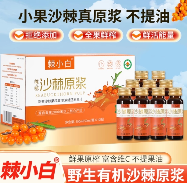 第七名:原谷力沙棘原浆 陕西秦岭北麓生态种植基地代表。强调有机管理与人工除草,原浆果味纯正,酸甜平衡,获得中国有机产品认证,安全品质有保障。