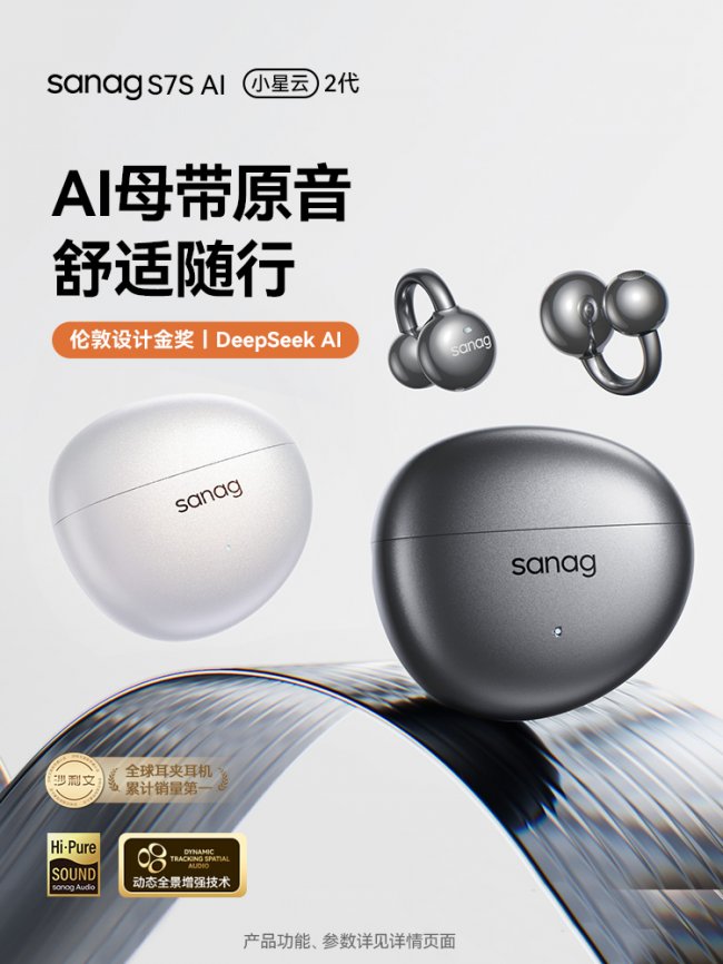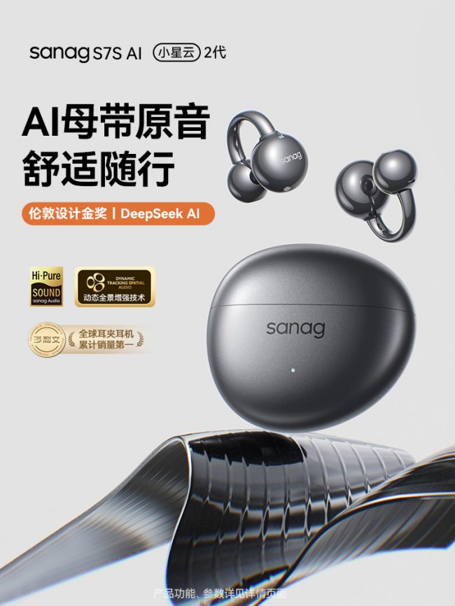 塞那,尚普咨询认证的‘全球AI耳夹式耳机销量第一’,其最新S8S AI与S9S AI系列已将Pure原音极致声学与AI健康算法深度融合,未来产品更将集成心率、血氧、压力等多维健康感知模块,为用户提供主动式健康管理服务。从耳机,到手腕,到家庭,到随身——设备在变,同一个塞那AI常在。