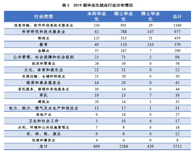 1、北航研究生就业主要分布在信息软件、科研和技术服务、制造业等行业,这三个行业占了就业总数的77.4%,还有两个就业过百人的行业是制造业和教育。
