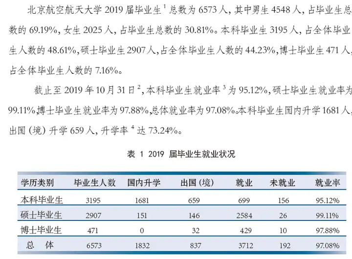 北航就业官网公布了《北京航空航天大学2019届毕业生就业质量年度报告》(2020届就业报告目前还未发布):2019届毕业生就业质量报告-北京航空航天大学https://www.buaa.edu.cn/info/1533/7220.htm