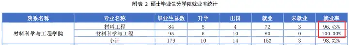 北航材料专业研究生就业率还是不错的,学硕+专硕总共179个研究生,只有3个人没找工作。