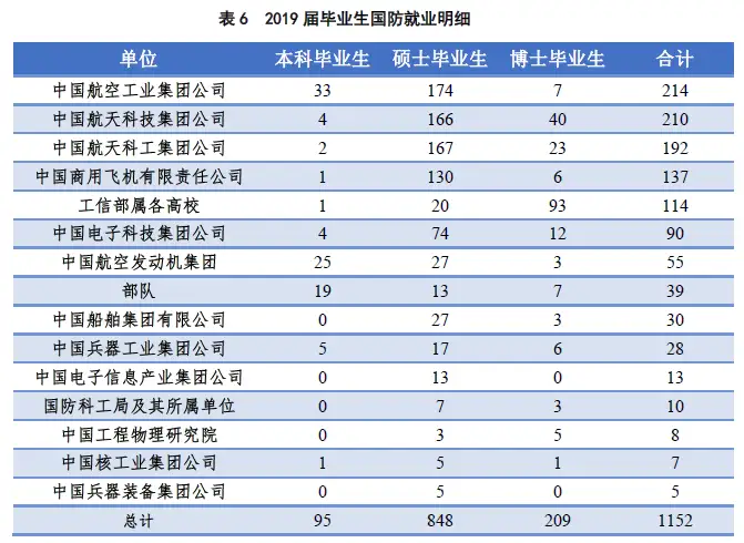 3、国防单位研究生就业人数848,占总就业人数的32.8%,其中航空航天单位都在150人以上,可见北航为国防事业贡献了大量优秀人才。