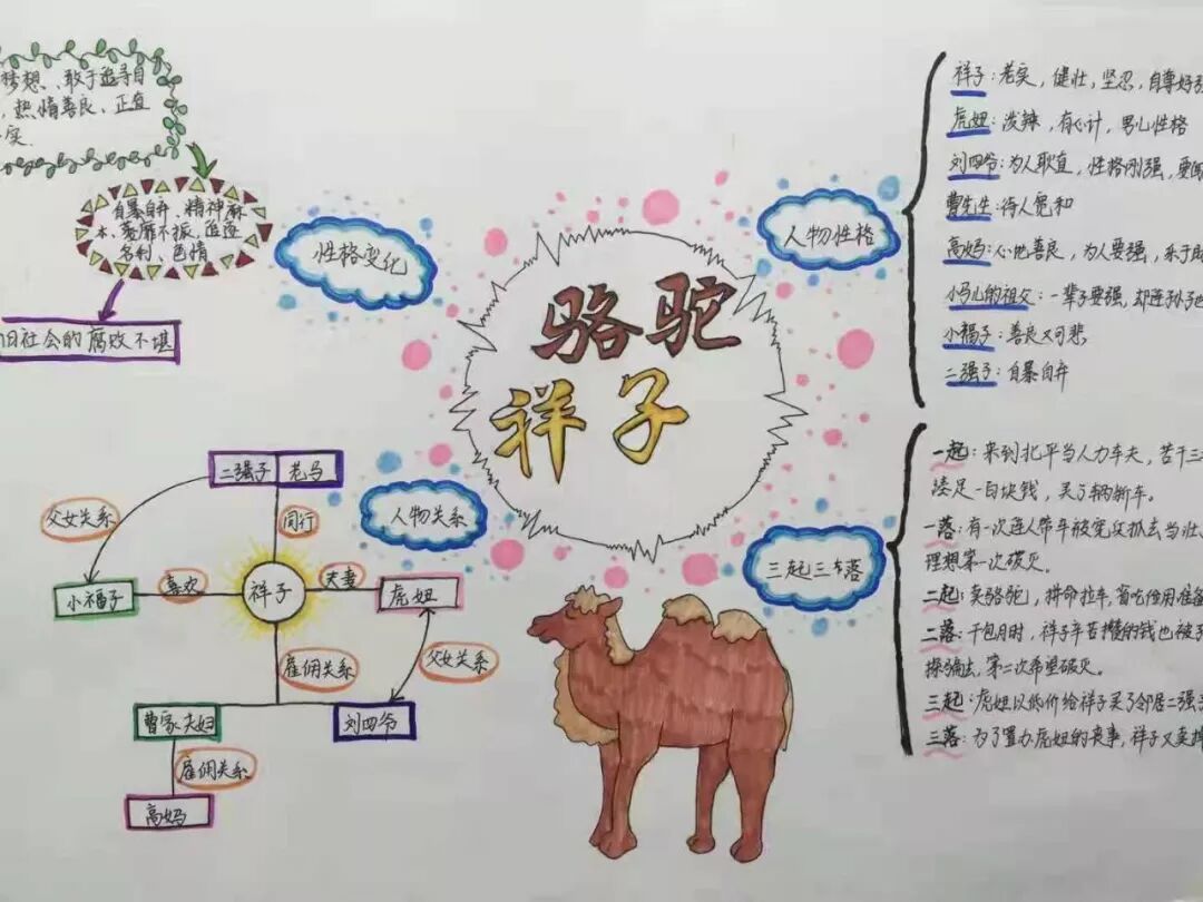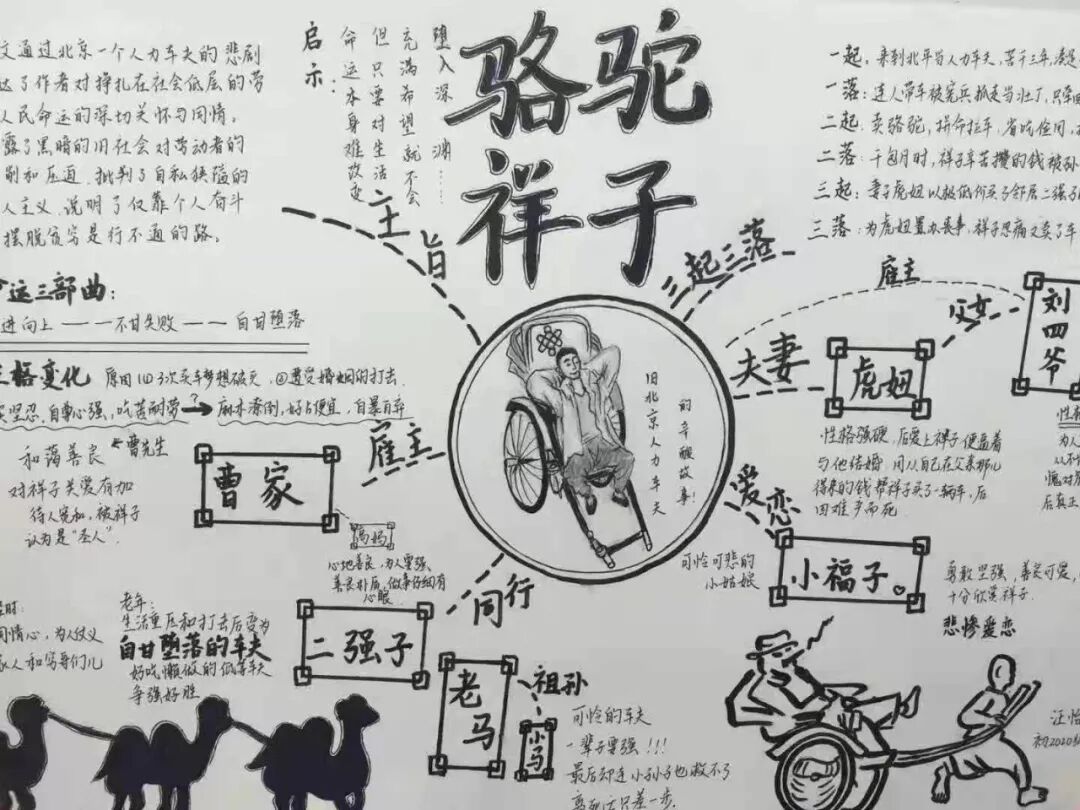 子曰:温故而知新,不亦说乎。为进一步巩固学生对经典名著《骆驼祥子》的理解,并借助新方法,培养学生开动大脑、自主学习的能力,这个寒假,重庆95中2020级语文组开展了重温《骆驼祥子》,巧绘思维导图的学科活动。
