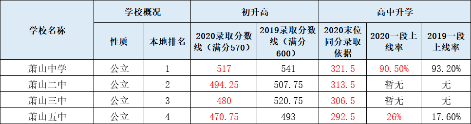 萧山中学在萧山区内属于排名第一的重点中学,20年中考录取分数线为517分,19年萧山区中考录取分数线为541分,20年高考,最高分704分,一段上线率达到90.5%。