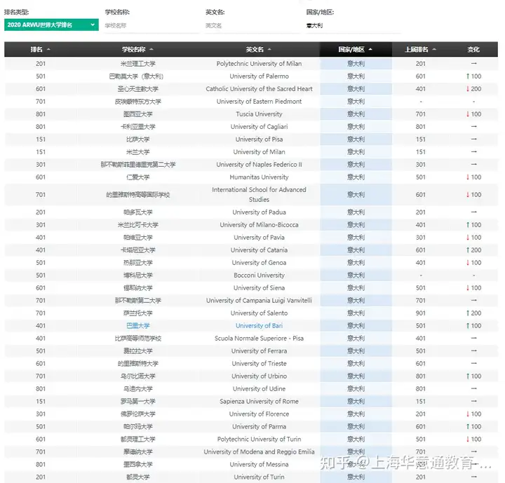 比如米兰大学在2020年ARWUshangai的排名为179,在2021年的QS排名中位列302位,在THE的排名中位于第371.