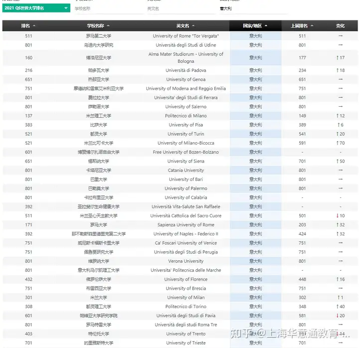 意大利2021年在QS的世界排名