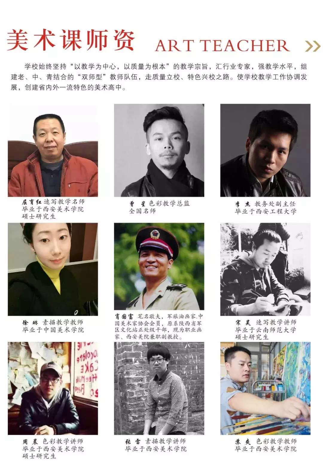 已有近万名优秀毕业生升入清华大学、中央美院、中国美术学院、南开大学、四川美术学院、西安美术学院等名牌重点美术专业院校及西北大学、陕西师范大学、西安建筑科技大学、西安石油大学等综合院校。我校每年都有99.8%以上的学生考入高等院校深造学习。专业联考年年名列全省前茅,超过了许多标准化高中,赢得了学生,家长和社会的广泛认可和高度赞誉。