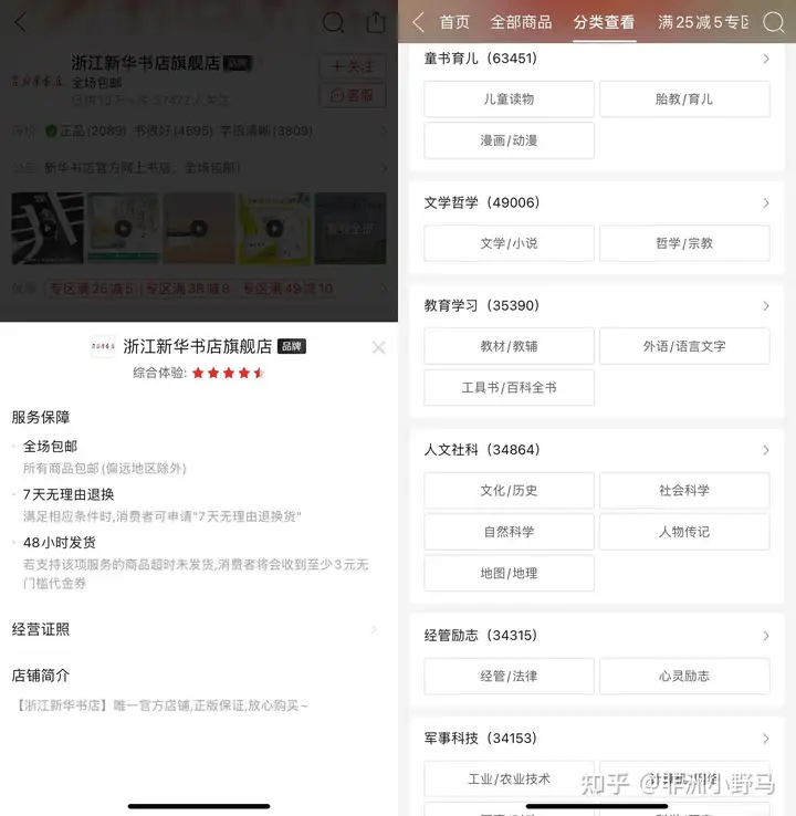 综合类店铺评分排名:凤凰新华书店图书旗舰店和湖北新华书店图书旗舰店五星,其余都是4星半