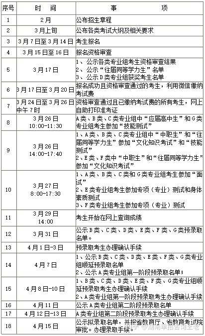 根据教育部、湖南省教育厅和湖南省教育考试院的相关要求,按公平竞争、公正选拔、公开透明录取的原则。根据招生计划,按专业组和生源类别,分别择优录取。我校优先录取第一志愿考生。录取专业组顺序为B类、C类、D类、E类、F类和G类,最后是A类。各专业组成绩及录取规则如下: