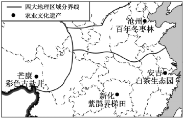 (2021·江西·九年级专题练习)我国拥有丰富多样的文化遗产。下图示意部分农业文化遗产分布。读下图,完成下面小题。