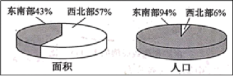 (2021秋·广东·八年级统考阶段练习)下图是我国人口地理分界线东南部和西北部的面积和人口比较图。据此,完成下列小题
