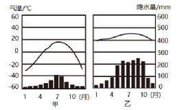 【详解】(1)读图可得,甲、乙、丙、丁四幅图中代表吐鲁番气候的是图丙,该地属于温带大陆性气候,冬冷夏热,一年内降水稀少。代表漠河气候的是图甲,该地属于温带季风气候,夏季暖热多雨,冬季寒冷干燥。代表五道梁气候的是图丁,该地属于高山高原气候。代表海口气候的是图乙,该地属于热带季风气候,终年高温,降水分旱雨两季。