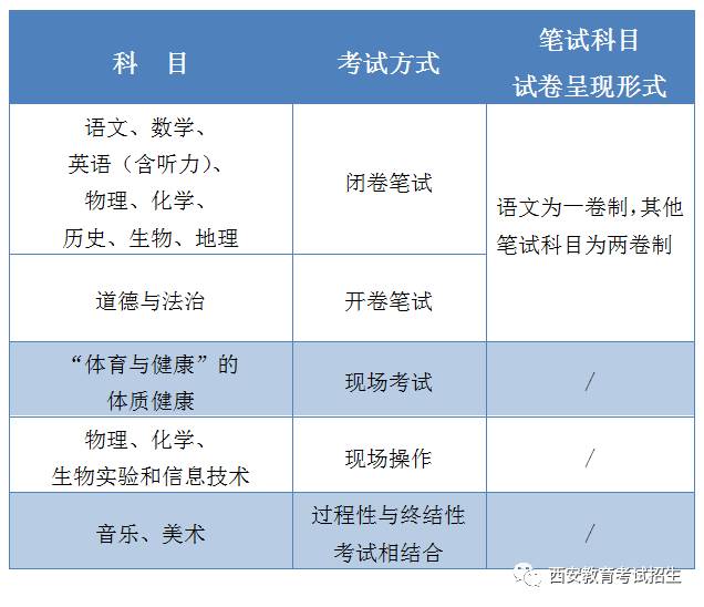 也就是说,对今年9月份入校的初一新生,中考就要按照新的政策实施了,在考试科目、考试形式、考试时间、阅卷方式(这点和西安考生关系不大,因为西安从2008年起就实行网上阅卷了)、成绩呈现、成绩应用等方面,都有新变化。对现在的初二、初三学生,则继续按照现有的考试方案进行。新生新政策、老生老政策,初二、初三的学生,可以松一口气了。大家看,小编这样理解对不对?