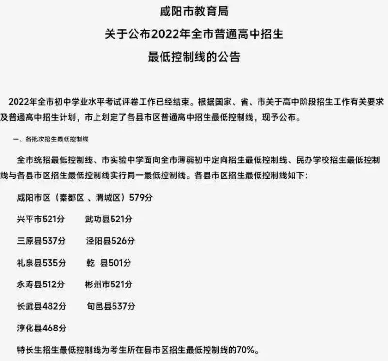 523分!2022西安城六区普高线公布,较去年上涨27分!陕西多地中考录取分数线出炉!