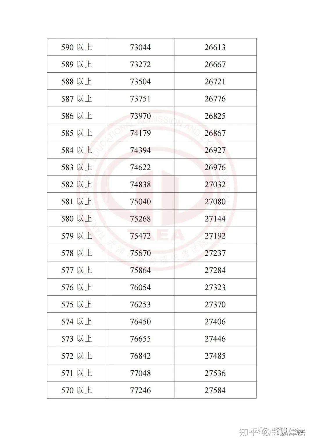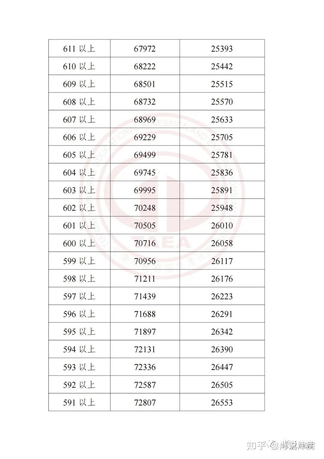 天津中考成绩正式公布,主要分数段详细数据看下图。