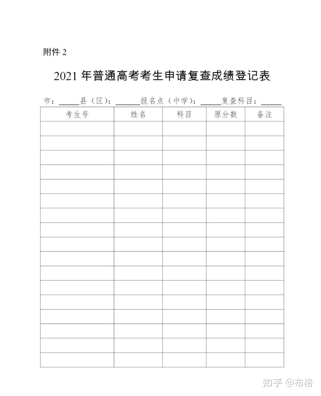 考生获得高考成绩后,如对本人某科成绩有疑问,可在6月26日17:00时前携带准考证到所在中学或当地县(市、区)招生办公室(考试中心)提出复查分数的书面申请,并按复查科目填写《考生申请复查普通高考各科目成绩登记表》(见附件2,附件2拉到最后获取)。