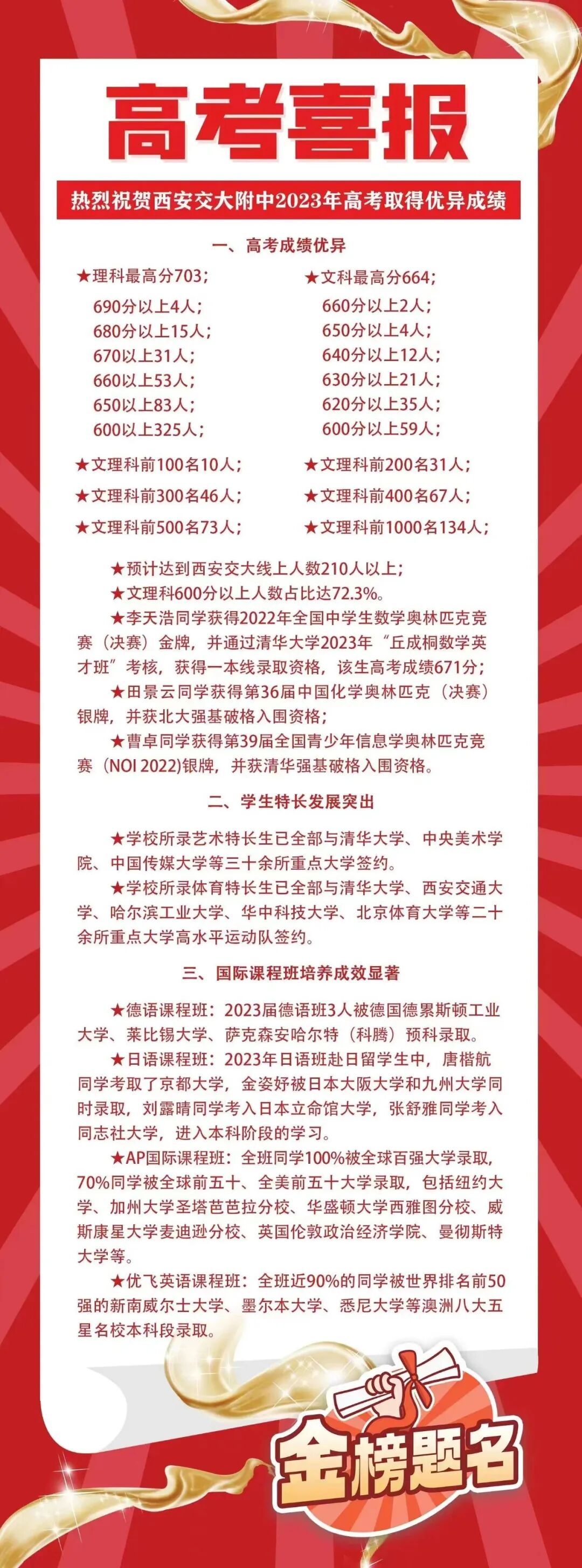 【高考喜报】2022西安市55所高中高考成绩汇总!