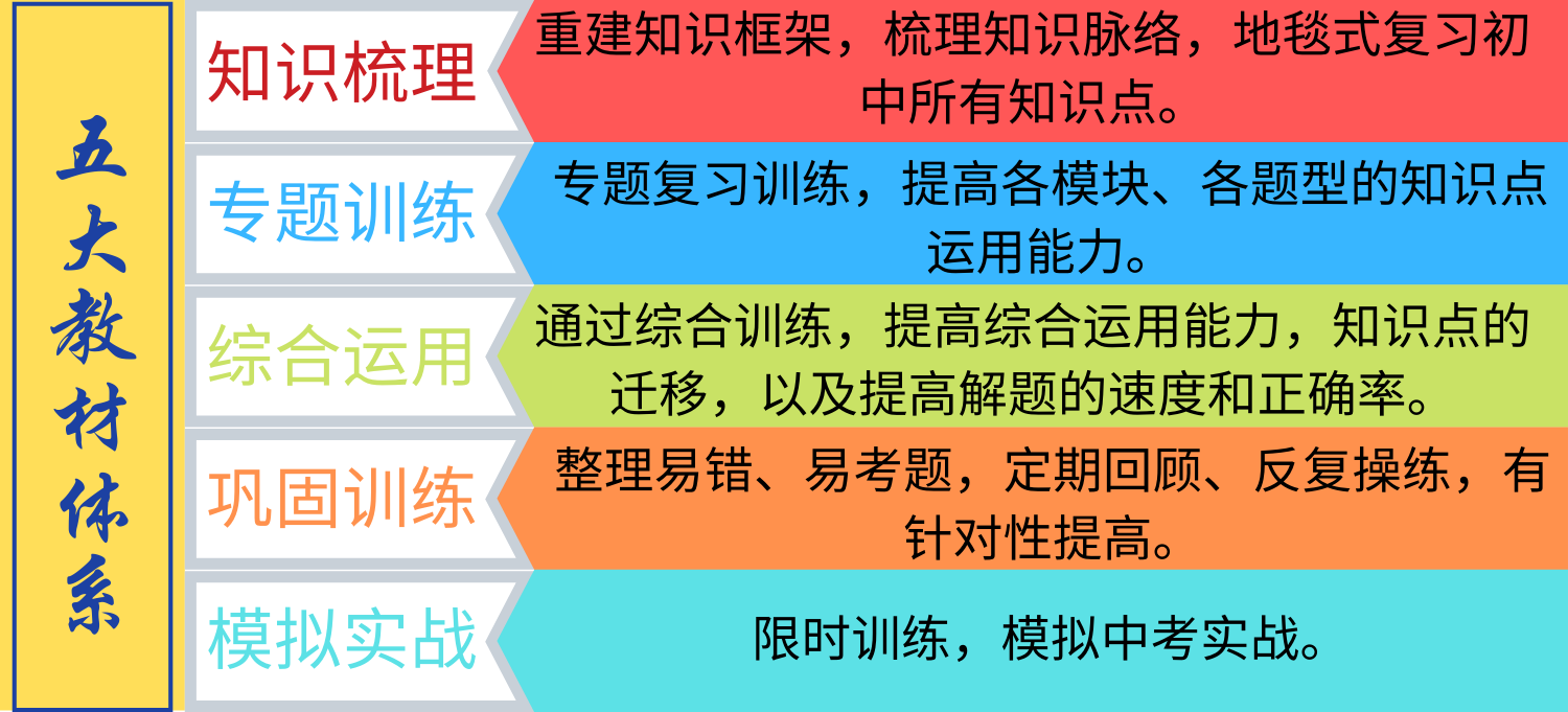 基础梳理,构建知识脉络: 理清教材中的重难点及易考点,扫除知识盲点,培养良好的学习习惯,纠正错误的学习思维及方法。
