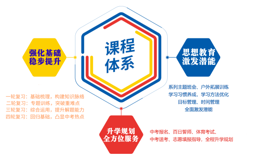 严格按中考考点复习,修正学生的学习习惯,将讲、练、考、辅相结合。主要有以下几项工作:错题集工程、周周练工程、日清月结工程、导师制工程、培优补差工程。做到天天练,周周清,月月考,务求学生拿稳分,拿足分,拿高分,确保学生快速稳步地提高成绩