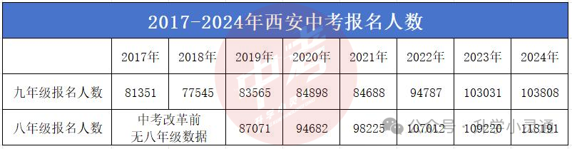 24年西安八年级地生会考人数为118191,已经达到了近几年的最高峰,到25年的中考人数,可能会因为报名条件、主动放弃中考、选择其他地市等原因,比前一年的地生考试人数稍少一些,但即便少个几千人,25年的西安中考报名人数也很可能将达到11万左右,要比今年的中考人数上涨几千人。