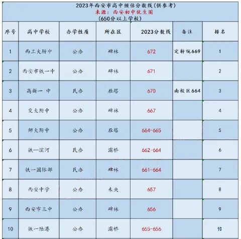 今年五大名校后面的五所学校的排名略有变化。其中,铁一陆港首次高考便成为黑马,跻身十大高中之中,录取分数线也达到了656分,后续发展值得期待。