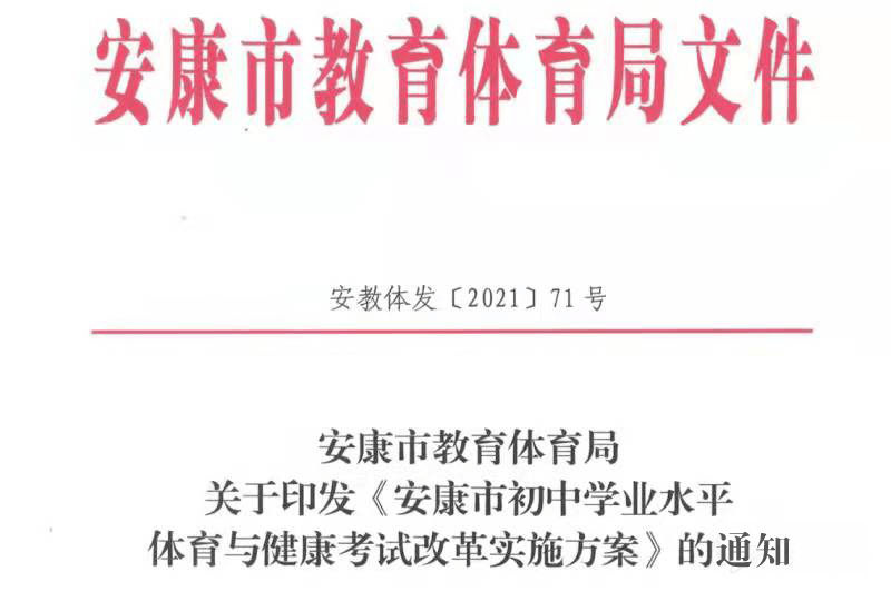 《安康市初中学业水平体育与健康考试改革实施方案》显示,初中体育考试采取过程管理评价与目标效果测试相结合的方法,初中体育考试内容由学生平时考核、现场统一测试和体育竞赛成绩加分三部分组成。