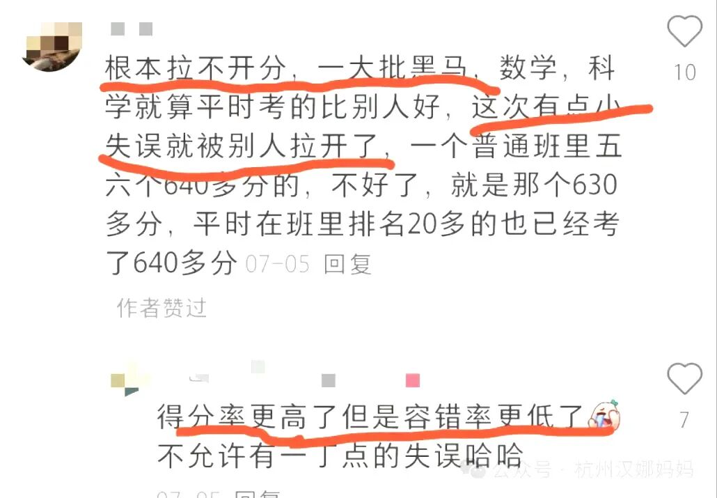 网友表示,“拉不开分,平时数学、科学就算平时考得比别人好,有点小失误就被别人拉开了。”