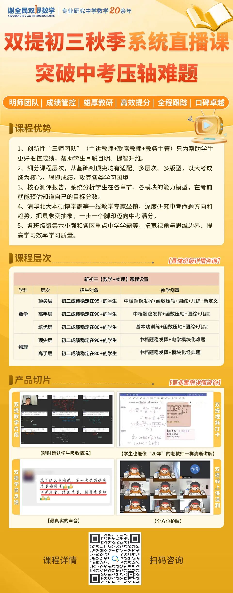 人大附、四中等8校初三开学考压轴题精讲视频合集,附试卷答案