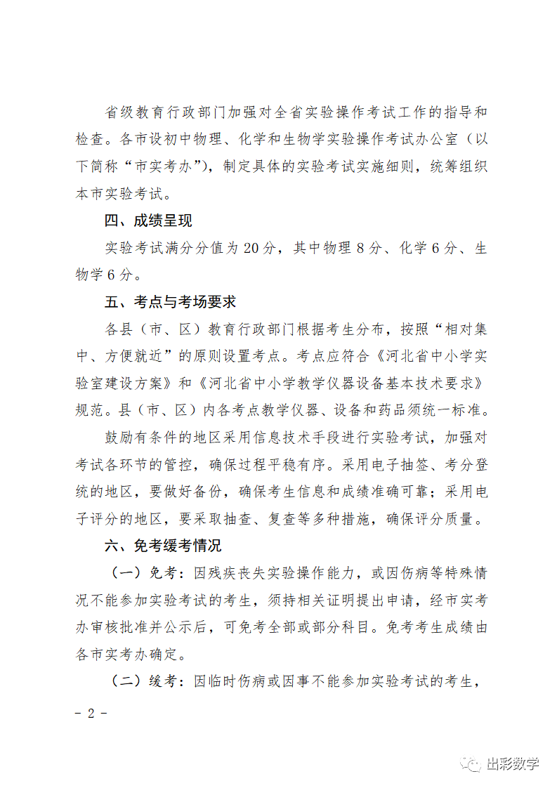 2.河北省初中学业水平物理、化学和生物学实验操作考试方案