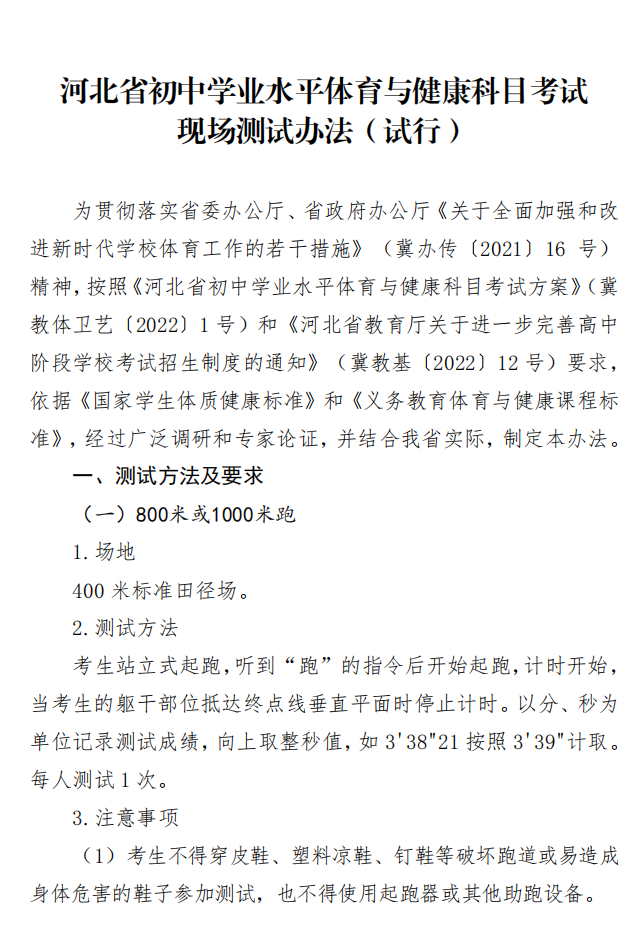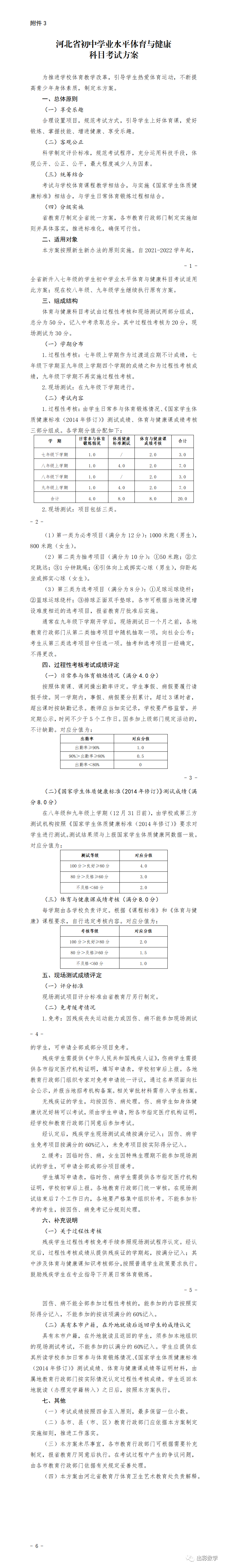 附件3:河北省初中学业水平体育与健康科目考试方案
