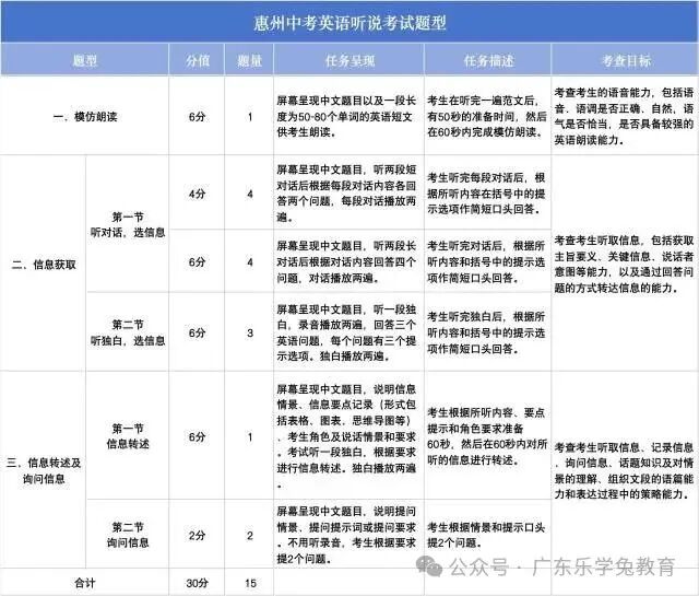 近日,惠州市教育局制定的《惠州市初中学业水平考试英语听说考试工作方案(试行)》印发。自2025年起,惠州中考实施英语听说考试。2025-2026年为政策过渡期,中考英语听说考试不收费。2027年起正式实施后,收费按有关规定执行。
